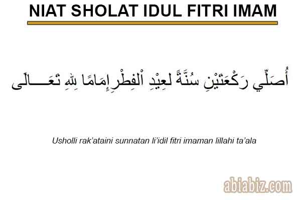 “Aku berniat shalat sunnah idul fitri dua rakaat menjadi imam karena Allah ta’ala.”